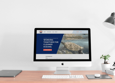 When I was creating the logo, all my concepts were ideas about the ocean as the company's work is all about the ocean whether it's saving sea turtles, saving coral reefs or keeping our oceans plastic free. I started out with making waves for the symbol. Eventually I settled on a badge-like logo so that the text wraps around the waves symbol.